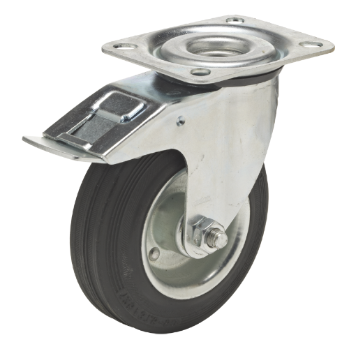 Поворотные колеса могут оснащаться тормозом. Используются поворотные колеса с тормозом для улучшения безопасности во время стоянки на наклонной поверхности или при выполнении погрузочно-разгрузочных работ.
